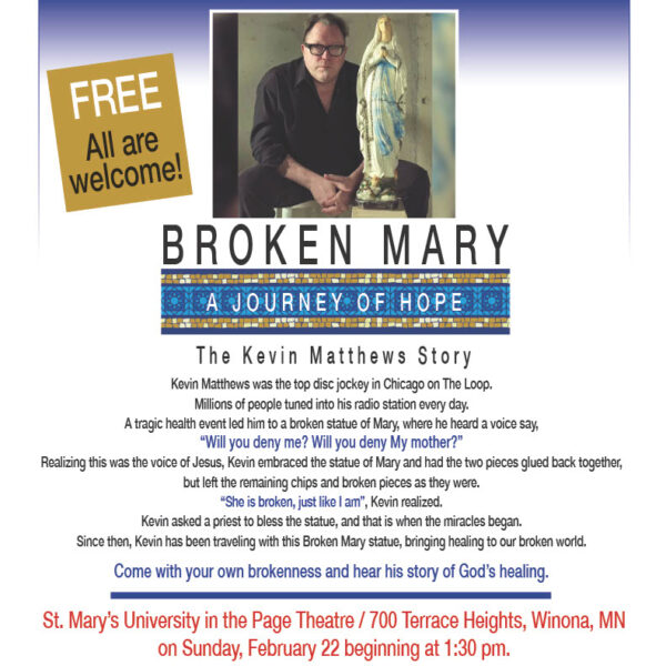 Come and hear Kevin Matthews inspiring conversion story and the roll that a broken statue of Mary played in it!