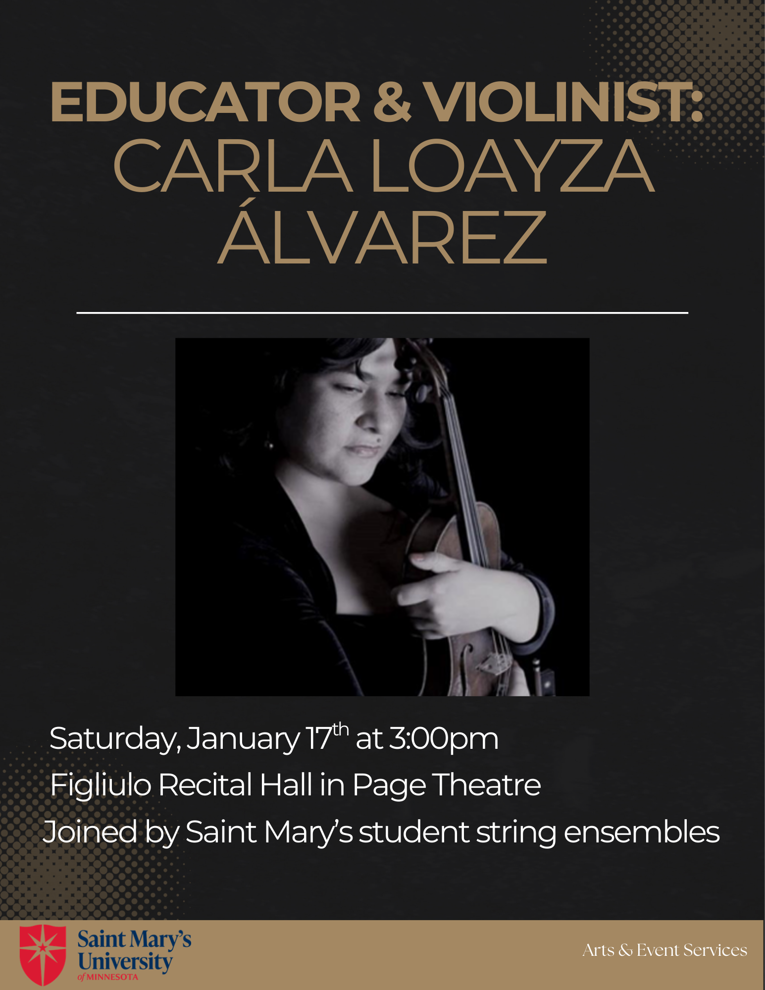 Join us on Saturday, January 17th at 3:00pm in the Figliulo Recital Hall as Carla Loayza Álvarez plays the violin and is joined by Saint Mary’s student string ensembles. This event is free and open to the public.
