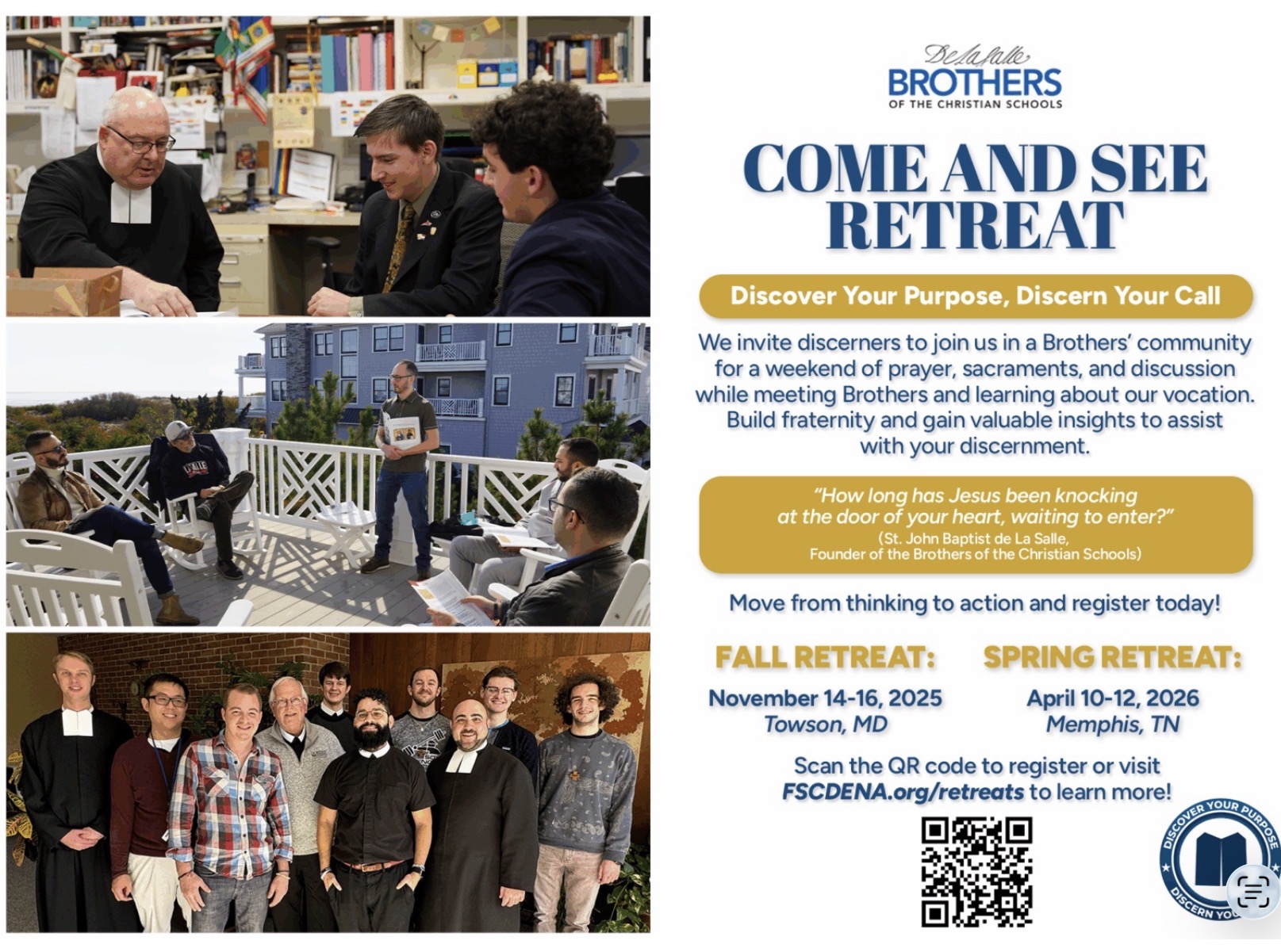 All young men discerning their call are invited to join the Brothers community April 10-12 in Memphis for a weekend of prayer, sacraments, and discussion while meeting Brothers and learning about the Brothers’ vocation. Come and build fraternity and gain valuable insights to assist with your discernment.