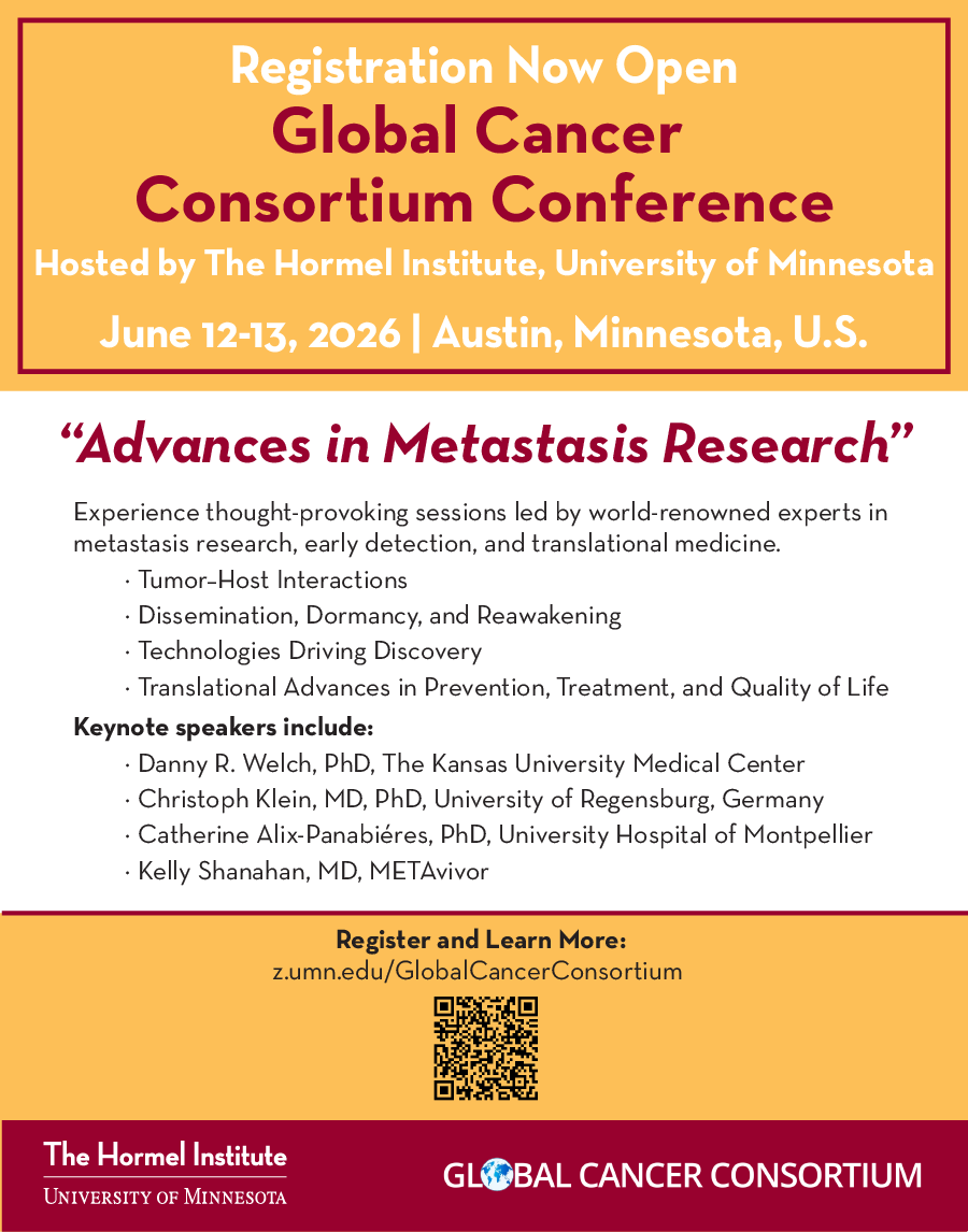 Registration is now open for the Global Cancer Consortium Conference, hosted by The Hormel Institute, University of Minnesota.
