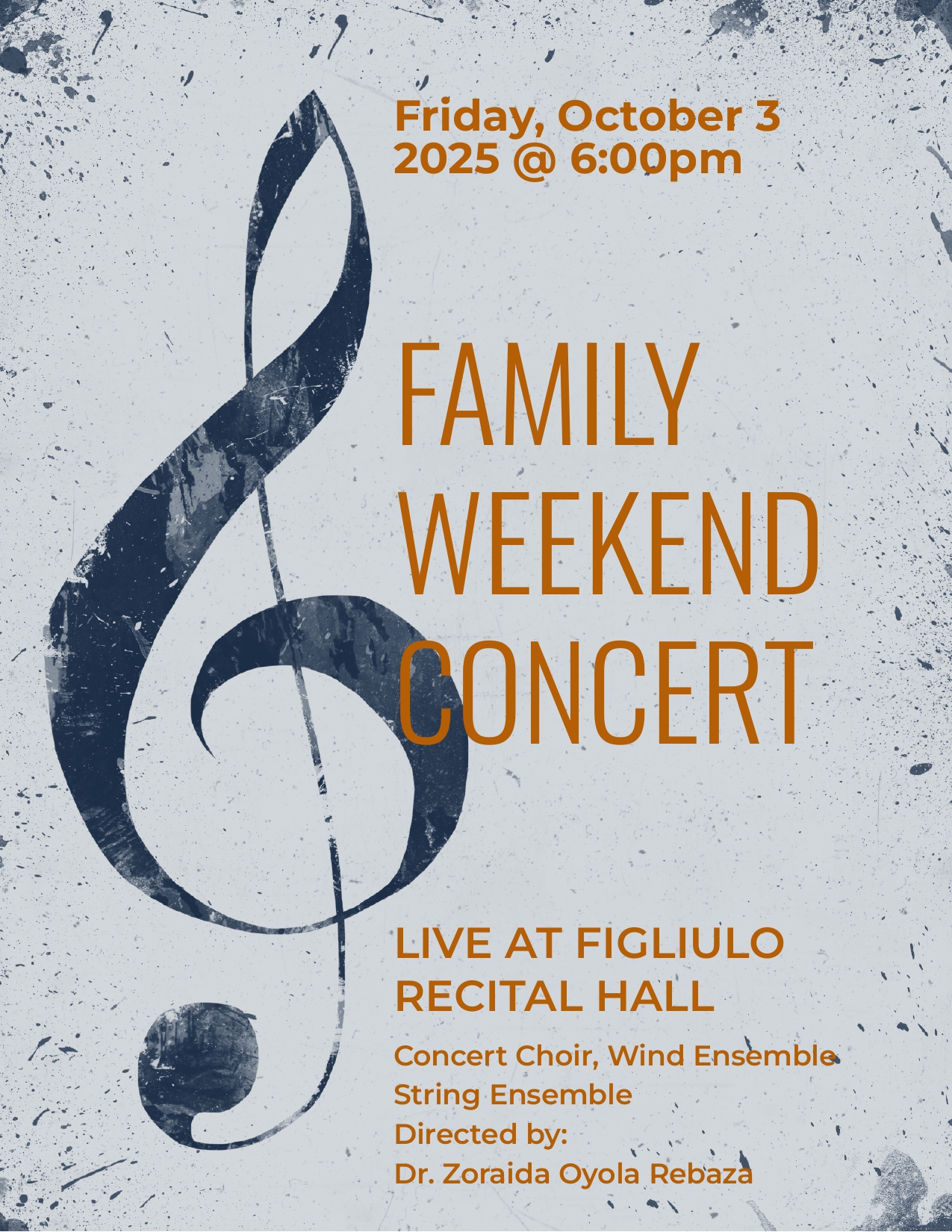 The Concert choir, band, and string ensemble will perform an array of musical styles under the direction of Dr. Zoraida Oyola Rebaza. Come and show support to your fellow musicians!