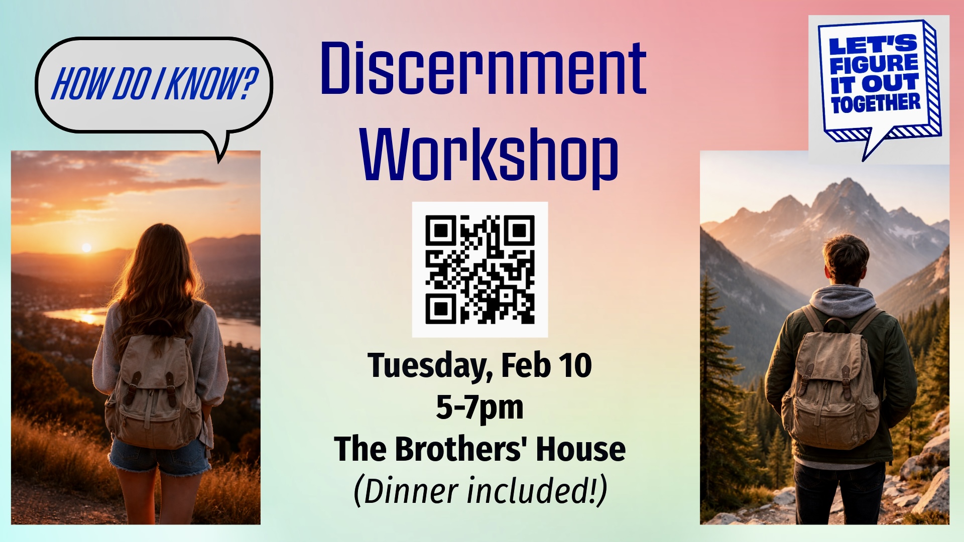 Since discernment is so important, it seems wise to sharpen and deepen our skills in discerning well. To that end, the Midwest Vocation Team–Brothers Larry, Juan Manuel, and Matthew–is offering a Discernment Workshop next Tuesday, February 10. It will focus upon the six steps of Lasallian Discernment and will involve presenting, sharing stories, and reflecting. It will take place at 5:00pm at the Brothers’ Residence and will conclude at 6:30 with dinner with the Brothers. If you’d like to participate, please register with the QR code, so we have an accurate count for dinner.