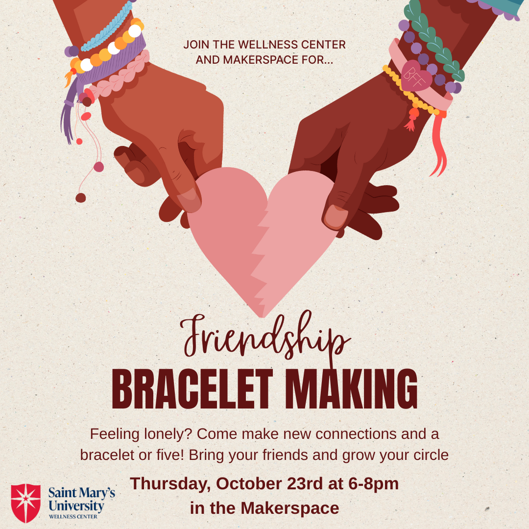 Feeling lonely? Join us for friendship bracelet making! This event is open to all…bring your friends or come to make new connections! Event will be held in the Makerspace on Thursday, October 23rd, from 6-8pm. The more the merrier!
