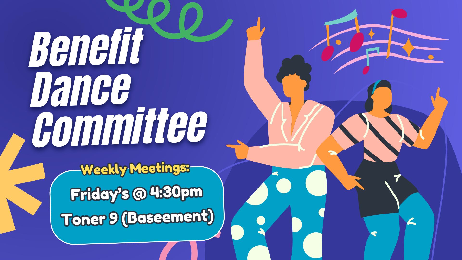 The Benefit Dance Committee will meet in Toner 9 on Friday Nov. 14th at 4:30pm to start planning for our big event April 10th.