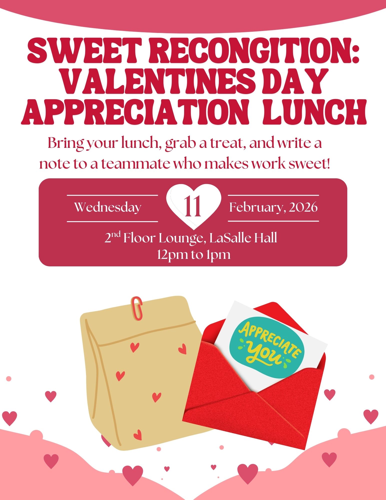 Bring your lunch and stop by to celebrate the people who make our workplace special. Take a few minutes to write notes of appreciation and recognition for your colleagues — whether you’re celebrating a great project, thanking someone for their support, or recognizing everyday kindness.