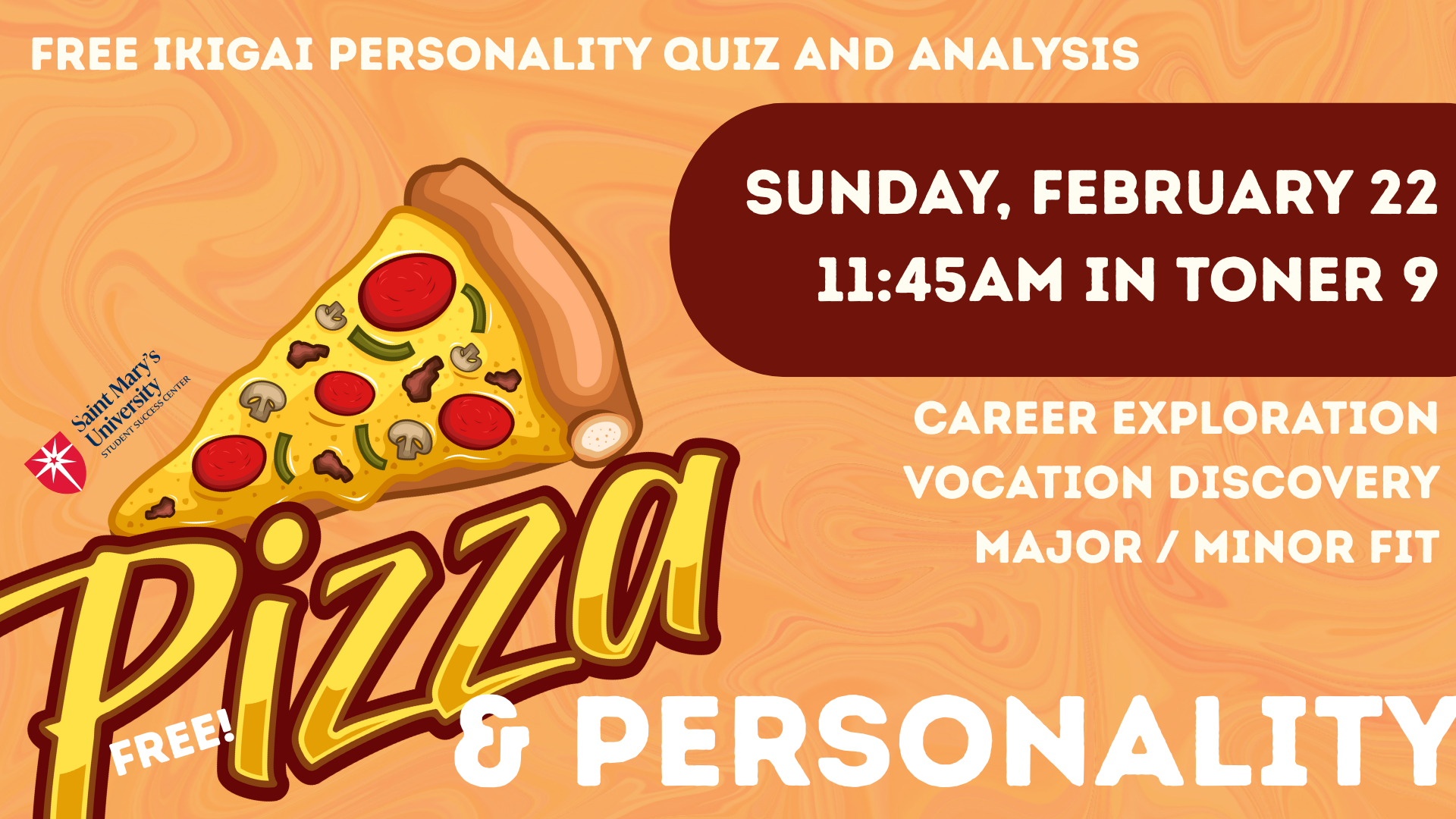 Pizza & Personality is an engaging, laid-back workshop where students enjoy pizza while exploring their unique strengths, motivations, and values through the IKIGAI personality quiz. Participants will identify what they love, what they’re good at, what the world needs, and what drives them—then discuss how these insights can shape their academic paths and future goals. It’s a fun, reflective session that blends self-discovery with a slice of community.