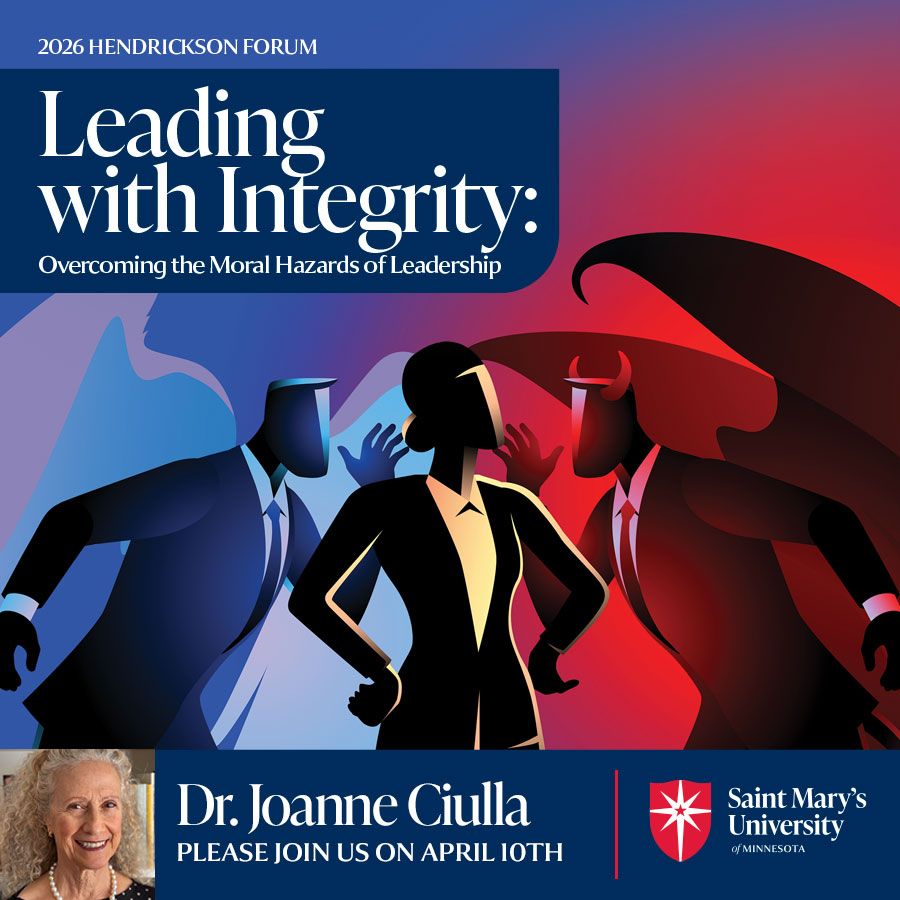 Saint Mary’s graduate students on the Minneapolis Campus attending the forum also have the unique opportunity to join in a private Q&A with this year’s Hendrickson Forum keynote speaker Dr. Joanne Ciulla.