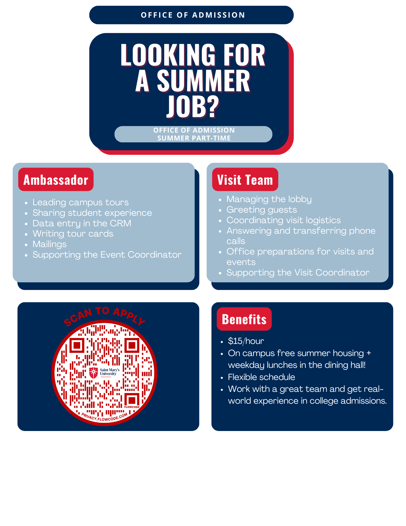 Summer 2026 Admissions Work Opportunity
