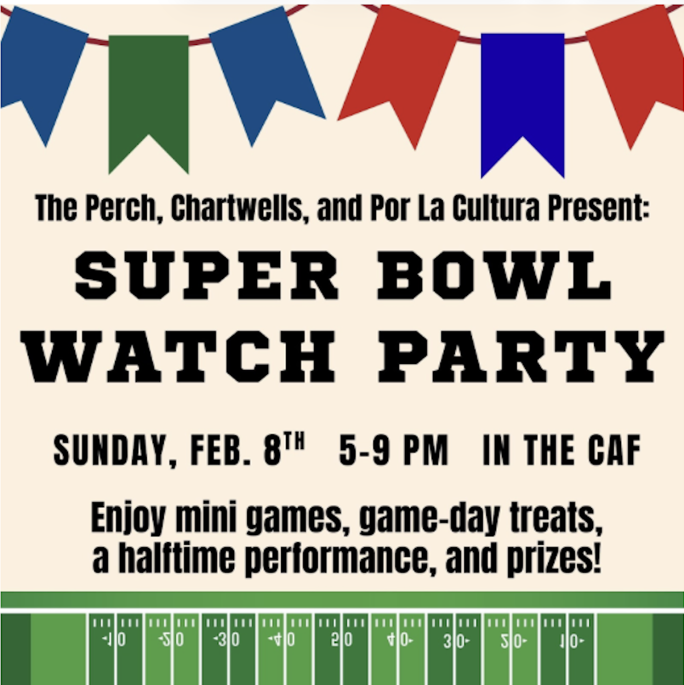 Football fans and friends are invited to enjoy an exciting evening filled with game-day energy on February 8 from 5–9 PM in the Caf. The event will feature live football viewing, mini games, a halftime performance, and opportunities to win prizes, such as a jersey of your choice. The opportunity to win prizes will be presented through a game-day prediction form, linked HERE. You must be present at the event to win! A game-day menu will be available throughout the night, including pizza, brats, nuggets, sliders, taco in a bag, and mocktails, making it a fun and festive event for everyone to enjoy.