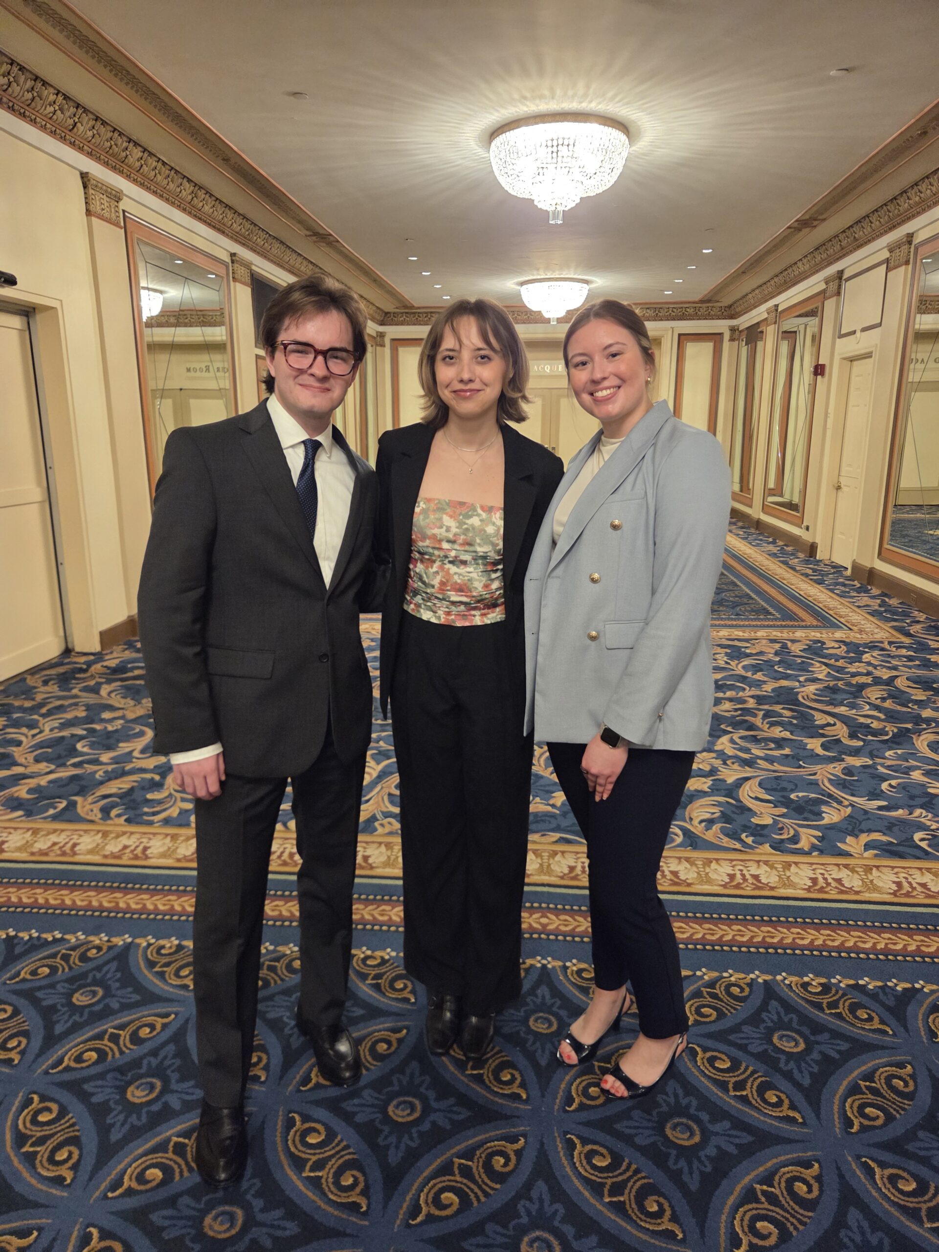 SMU Seniors Xiaoyun Liang and Javier Rodriguez Cifuentes present their research at the state capitol.