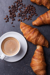 top-view-coffee-croissant-with-coffee-beans-delicous-coffee