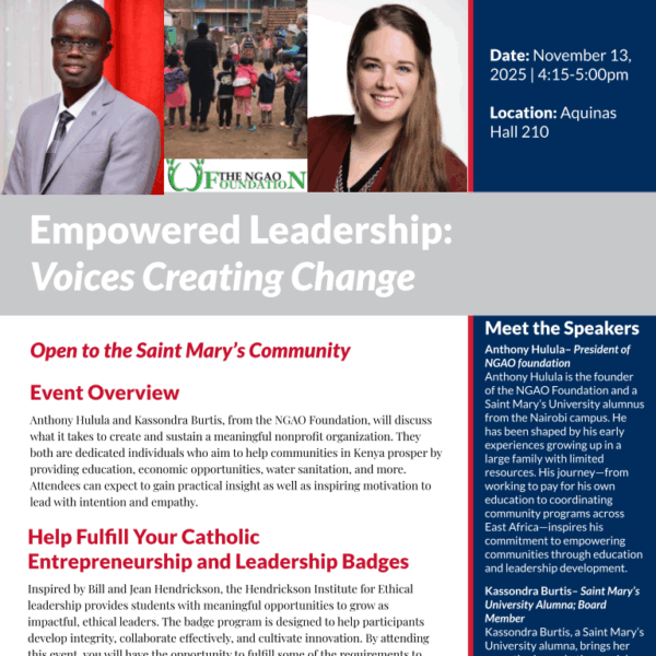 Earn credit toward badges and hear how alumni from the Saint Mary’s and Nairobi campuses work together to aid those…