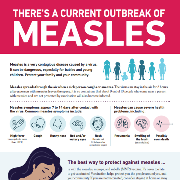 There are measles outbreaks across the country. Learn signs and symptoms to keep our community safe.